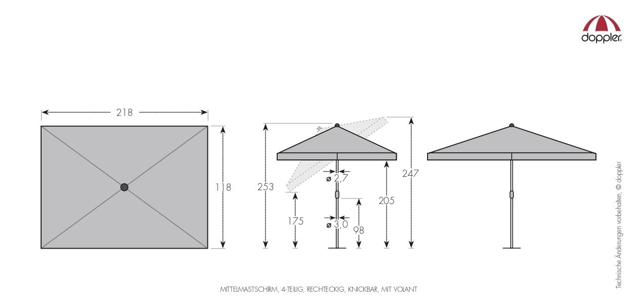Sunline Waterproof - pratico ombrellone di doppler in formato rettangolare. Prodotto nello stabilimento Doppler in Austria.
